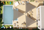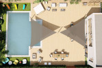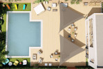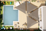 SUNFLOWER est un ensemble de voiles d'ombrage sur mesure déclinable en 12 versions et 12 dimensions. La conception permet à l'ensemble d'être modulable, c'est à dire que, selon les versions, vous pouvez déplacer les voiles d'ombrage pour changer la forme et ainsi modifier la zone à ombrager.
