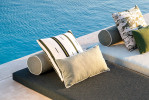 Les coussins pour bain de soleilCes coussins ont la particularité de s'articuler pour séparer l'assise du dossier et créer ainsi un angle réglable. |